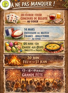 Le foyer vous a préparé un joli programme d’animations pour les prochains mois : moments conviviaux, sport, traditions et fête au rendez-vous.