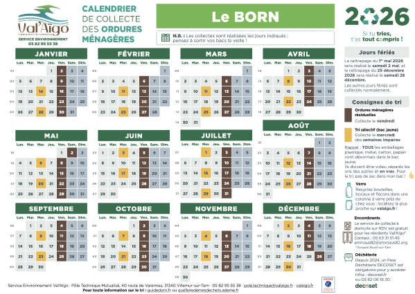 2026 - Calendrier de collecte des ordures ménagères